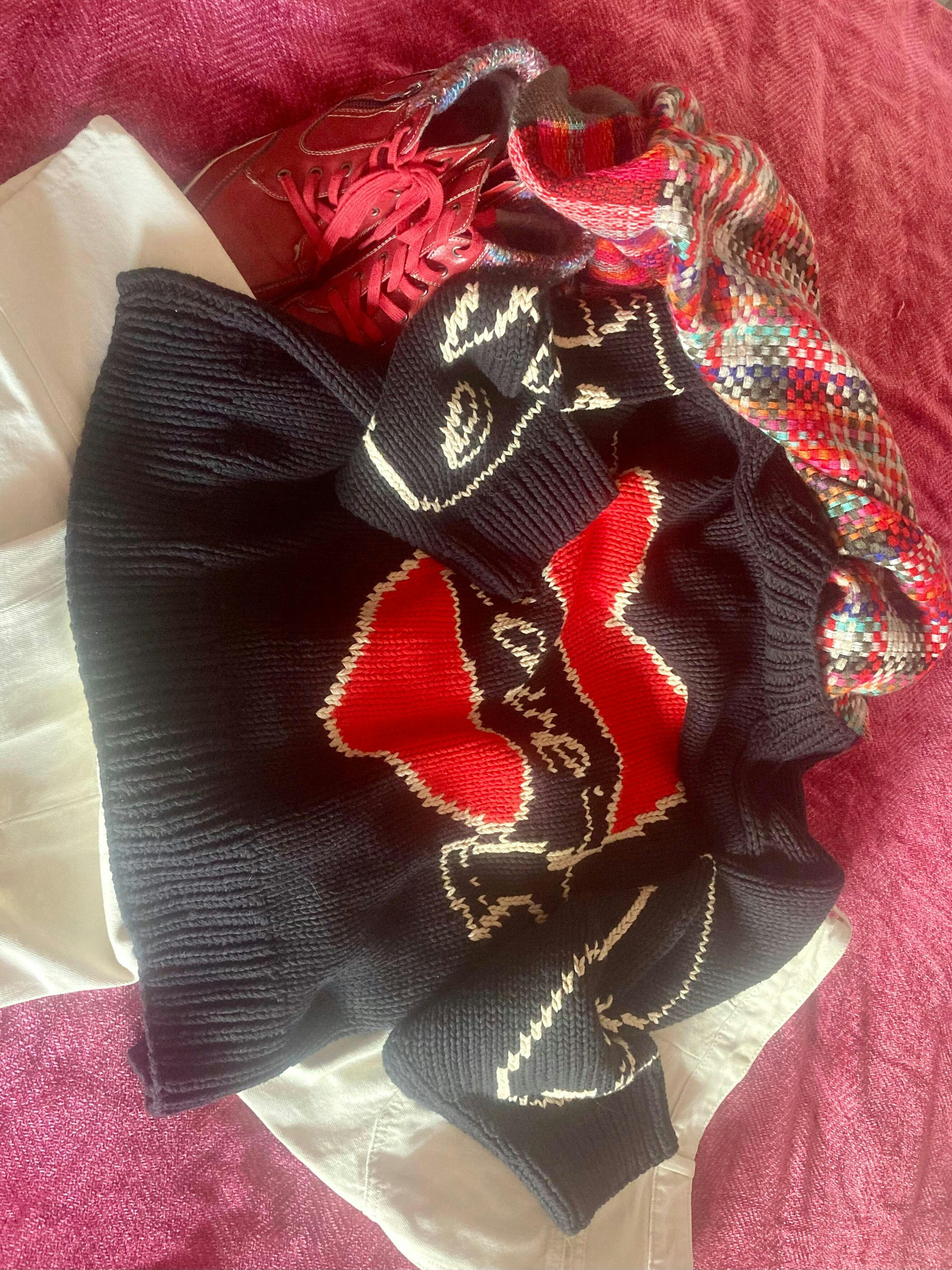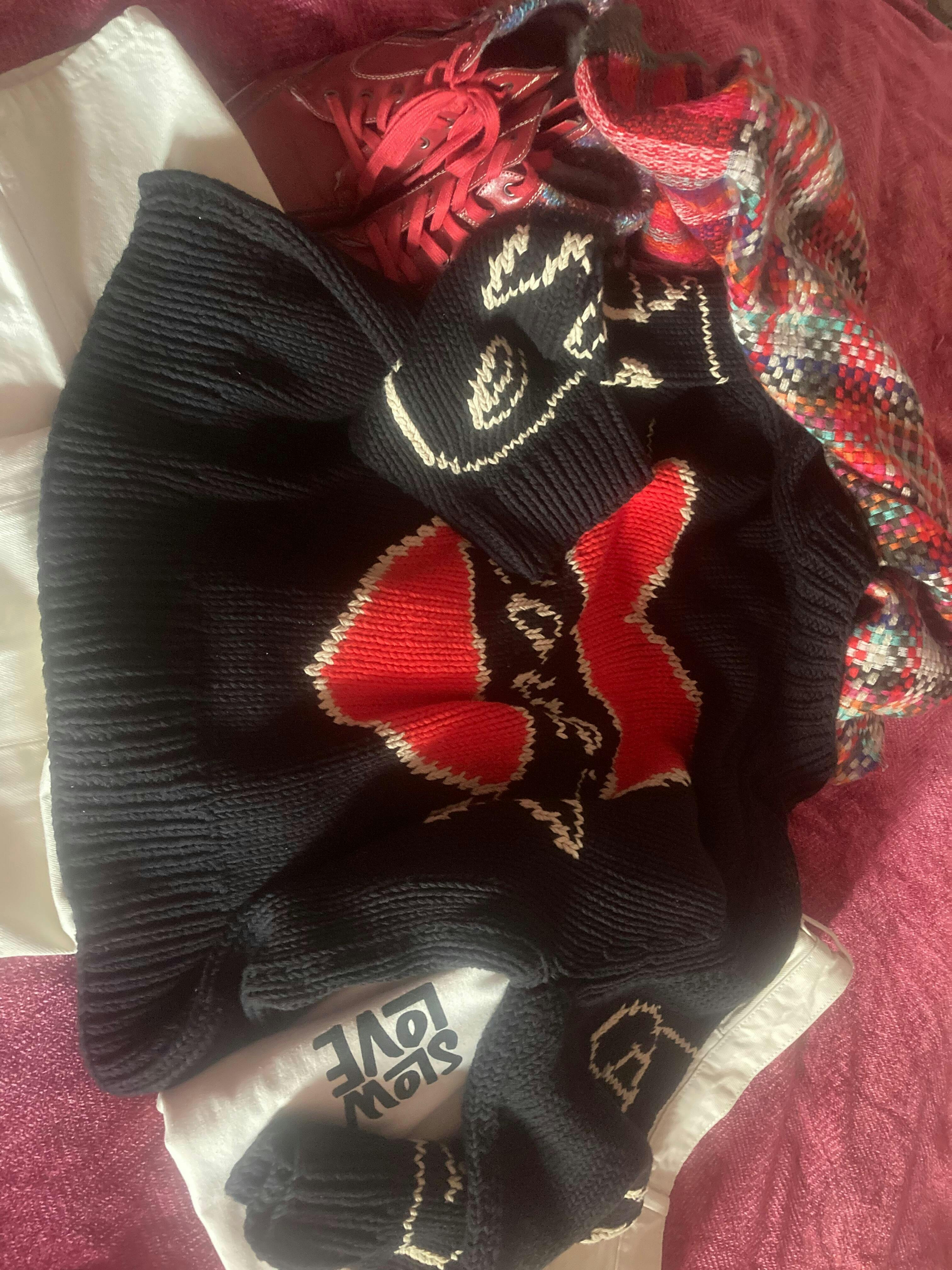 Hand knitted using heavy, high quality 100% cotton yarn. As with all of our hand knits, you must treat this jumper like a piece of wearable art.