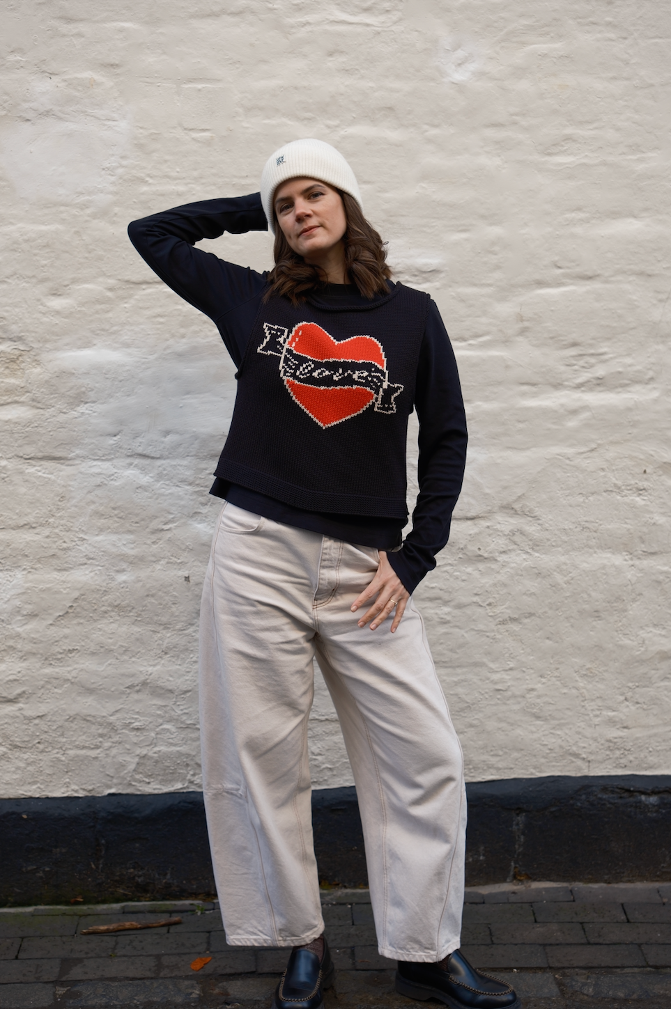 The Young Hearts Tank Top is a new take on our original Young Hearts design, reworked into our iconic tank shape. Made from 100% cotton, it has a soft feel and features intarsia knitting. Which means it is machine knitted with the design tied off by hand. Designed for everyday wear and easy layering.